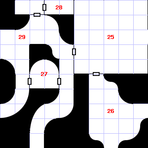 | 25 | A gusting breeze blows through this area. Encounter: Gnomes (4) Treasure: None. | 26 | The air here is very hot. This area smells of rotting vegetation. | 27 | There is a pile of straw here. |