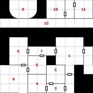 | 31 | There is a putrid smell coming from something nearby. There are cracks in the floor here. Treasure: 500sp. | 32 | This area is very dusty. Treasure: 300sp. | 33 | There is a small puddle of water here. |