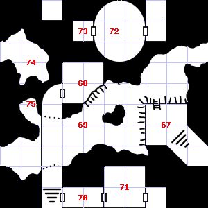 | 67 | Treasure: 400sp, 30gp. | 68 | A strong wind blows through this area. | 69 | Treasure: 500sp, 10gp. |