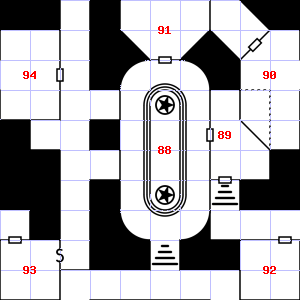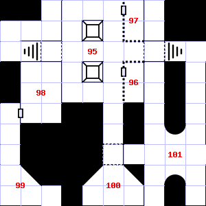 | 58 | This area has a stale, fetid smell. | 59 | A strong wind blows through this area. This area has a stale, fetid smell. There is a bent and rusted iron bar here. Trap: Chute: No damage, but slide to the next level down (ignore if there is no lower level). | 60 | It is foggy here, making it difficult to see. |