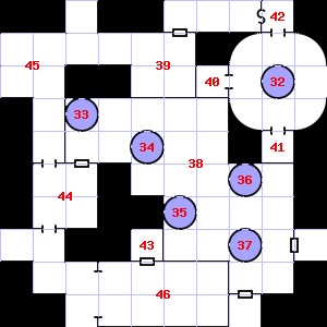 | 34 | The smell of ozone assails your nostrils. | 35 | There is a rusted spike here. | 36 | Encounter: Gnomes (4) Treasure: None. |