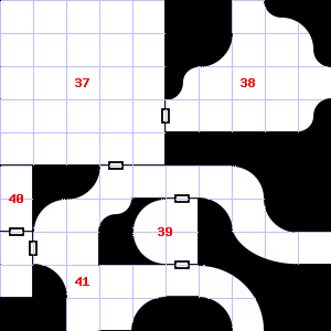 | 37 | This area is covered in cobwebs. Treasure: 600sp. | 38 | The air here is very cold. Fog gathers and swirls on the floor, concealing it. The ceiling here is damp. Encounter: Green Slimes (4) Treasure: As per monster type. | 39 | The air here is very hot. There are cracks in the ceiling here. Encounter: Skeletons (8) Treasure: As per monster type. |