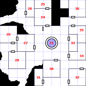 | 31 | A cold air current blows through this area. There is a torn sack here. Encounter: Wolves (8) Treasure: As per monster type. | 32 | Encounter: Shrews, Giant (3) Treasure: None. | 33 | |