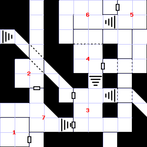 | 34 | The air here is very hot. There is a candle stub here. | 35 | A slight breeze blows through this area. | 36 | A strong, moaning wind blows through this area. This area smells faintly of urine. There is a torn sack here. Trap: Fog: Looks like poison gas, but harmless. |