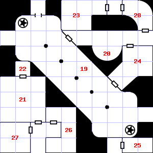 | 13 | The air here is very cold. Treasure: 300sp. | 14 | There is a large puddle of water here. Encounter: Gnomes (5) Treasure: None. | 15 | A cold air current blows through this area. A haze of dust hangs in the air. The wall here is damp. |