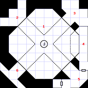 | 4 | Treasure: 100sp, 20gp. | 5 | A slight, damp breeze blows through this area. This area has a pleasant, earthy smell. | 6 | This area smells faintly of urine. |