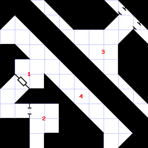 | 91 | 92 | This area smells faintly of urine. This area is covered in cobwebs. Encounter: Goblins (5) Treasure: None. | 93 | This area has a pleasant, earthy smell. This area is very dusty. Encounter: Traders (4) Treasure: None. | |