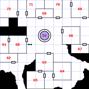 | 61 | This area has a pleasant, earthy smell. It is foggy here, making it difficult to see. Encounter: Gnomes (3) Treasure: As per monster type. | 62 | This area smells faintly of urine. | 63 | |