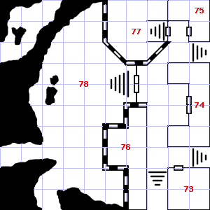| 73 | A strong updraft blows through this area. Encounter: Skeletons (8) Treasure: None. | 74 | A metallic smell assails your nostrils. It is foggy here, making it difficult to see. There are cracks in the wall here. Encounter: Bandits (5) Treasure: None. | 75 | A strong updraft blows through this area. There is a mold growing here. Encounter: Snakes, Cobra (1) Treasure: As per monster type. |