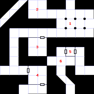| 7 | This area is covered in cobwebs. Encounter: Spiders, Crab (4) Treasure: None. | 8 | A slight breeze blows through this area. There is a salty, wet smell to this area. There is water dripping here. Encounter: Orcs (5) Treasure: As per monster type. | 9 | A chlorine-like smell assails your nostrils. The wall here is damp. Treasure: 200sp. |