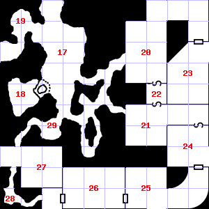 | 19 | It is foggy here, making it difficult to see. Encounter: Shrews, Giant (3) Treasure: None. | 20 | A strong, gusting wind blows through this area. This area is very dusty. Encounter: Dwarves (4) Treasure: None. | 21 | This area smells faintly of manure. There is a cracked hammer head here. Encounter: Acolytes (2) Treasure: None. |