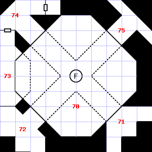 | 67 | This area has a stale, fetid smell. Encounter: Green Slimes (1) Treasure: As per monster type. | 68 | A strong wind blows through this area. Fog gathers and swirls on the floor, concealing it. There is water dripping here. Encounter: Snakes, Cobra (6) Treasure: None. | 69 | A slight, damp breeze blows through this area. This area has a pleasant, earthy smell. It is foggy here, making it difficult to see. There are bits of fur and hair scattered around here. Encounter: Shrews, Giant (1) Treasure: As per monster type. |