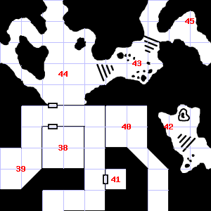 | 40 | It is foggy here, making it difficult to see. Encounter: Kobolds (9) Treasure: None. | 41 | There is a torn sack here. | 42 | The air here is very cold. It is foggy here, making it difficult to see. Encounter: Halflings (10) Treasure: None. |
