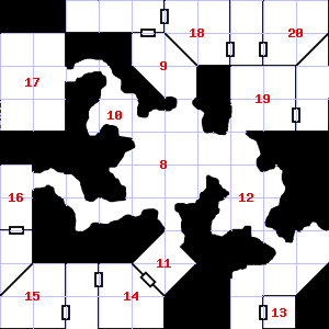 | 7 | This area has a pleasant, earthy smell. Treasure: 300sp, 10gp. | 8 | There are sticks scattered here. Encounter: Snakes, Cobra (5) Treasure: As per monster type. | 9 | Treasure: 100sp. |