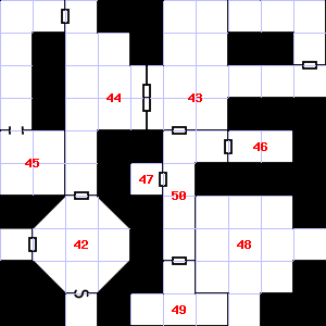 | 46 | Encounter: Acolytes (4) Treasure: None. | 47 | It is misty here. Encounter: Shrews, Giant (1) Treasure: As per monster type. | 48 | There are bones scattered here. Trap: Chute: No damage, but slide to the next level down (ignore if there is no lower level). |