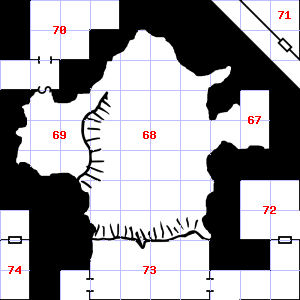 | 10 | This area has a pleasant, earthy smell. There is a cracked hammer head here. | 11 | There is a salty, wet smell to this area. There is a trickle of water here. | 12 | There is a pile of dung here. Treasure: 400sp. |