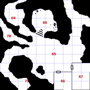 | 64 | A slight downdraft blows through this area. Treasure: 300sp. | 65 | 66 | There is a rusted spike here. | |
