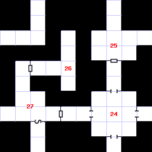 | 25 | The air here is very cold. | 26 | There are rotting wood pieces here. | 27 | Trap: Poison gas: Save vs. Poison or die. |