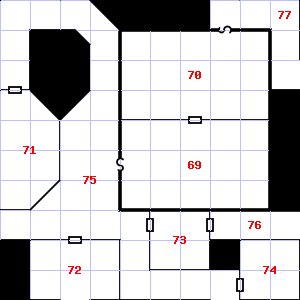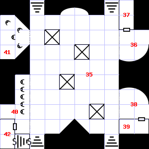 | 70 | Guano covers this area. | 71 | A slight, damp breeze blows through this area. Treasure: 200sp. | 72 | |