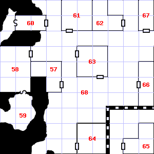 | 43 | This area is covered in cobwebs. | 44 | This area is covered in cobwebs. | 45 | A slight breeze blows through this area. Teeth and fangs are scattered here. |