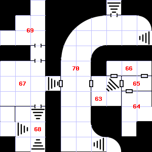 | 61 | There is a cracked hammer head here. | 62 | A slight updraft blows through this area. | 63 | This area smells faintly of manure. There is a pile of dung here. |