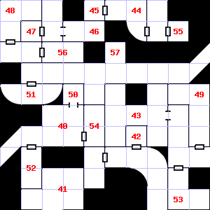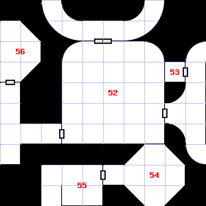 | 49 | A slight breeze blows through this area. Fog gathers and swirls on the floor, concealing it. Encounter: Sprites (9) Treasure: As per monster type. | 50 | A strong downdraft blows through this area. This area smells faintly of urine. It is foggy here, making it difficult to see. | 51 | A slight breeze blows through this area. There is a broken bottle here. |