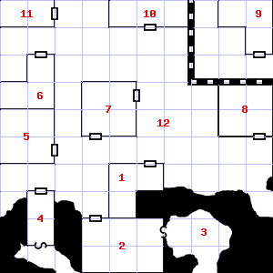 | 55 | 56 | This area has a stale, fetid smell. Encounter: Dwarves (3) Treasure: None. | 57 | There is a large puddle of water here. Trap: Poison gas: Save vs. Poison or die. | |
