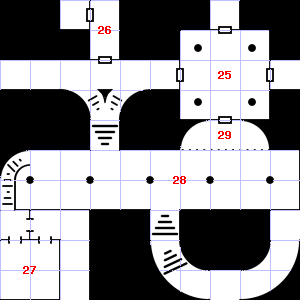 | 25 | This area is covered in cobwebs. | 26 | Encounter: Sprites (14) Treasure: None. | 27 | The air here is very hot. This area is very dusty. |