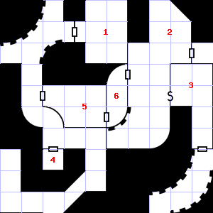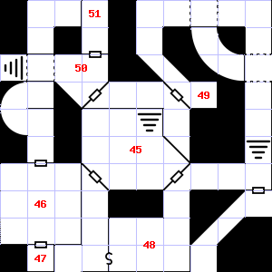 | 34 | There is a mold growing here. Treasure: 300sp. Trap: Spray: Unknown liquid that attracts Wandering Monsters; double chances for 1d6 hours. | 35 | 36 | This area smells faintly of urine. This area is covered in cobwebs. Encounter: Sprites (8) Treasure: As per monster type. | |