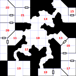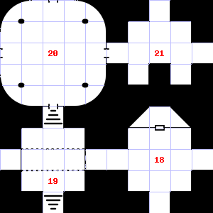 | 16 | Encounter: Bandits (8) Treasure: As per monster type. | 17 | There are cracks in the wall here. Trap: Chute: No damage, but slide to the next level down (ignore if there is no lower level). | 18 | Guano covers this area. |