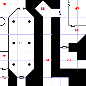 | 76 | A slight breeze blows through this area. There is a badly dented helmet here. | 77 | The wall here is damp. | 78 | A slight, damp breeze blows through this area. This area is very dusty. Encounter: Gnomes (4) Treasure: None. |