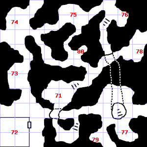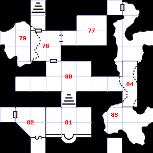 | 79 | There is a large puddle of water here. Encounter: Orcs (6) Treasure: None. | 80 | The wall here is damp. |