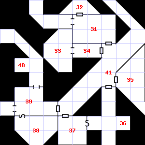 | 31 | There is a large puddle of water here. Treasure: 200sp. Trap: Spring-fired darts: 1-6 darts hit for 1-4 points of damage each. | 32 | The air here is very hot. The ceiling here is damp. | 33 | This area smells faintly of manure. There is a large puddle of water here. Encounter: Kobolds (9) Treasure: None. |