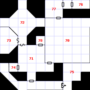 | 73 | The air here is very hot. This area has a pleasant, earthy smell. There is a cracked hammer head here. | 74 | A slight breeze blows through this area. There are cracks in the floor here. Encounter: Skeletons (8) Treasure: As per monster type. |