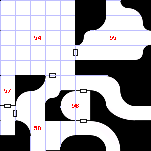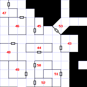 | 52 | This area has a stale, fetid smell. Guano covers this area. Trap: Fog: Looks like poison gas, but harmless. | 53 | A slight breeze blows through this area. This area has a stale, fetid smell. Encounter: Acolytes (4) Treasure: As per monster type. | 54 | Encounter: Lizards, Gecko (1) Treasure: As per monster type. |
