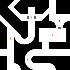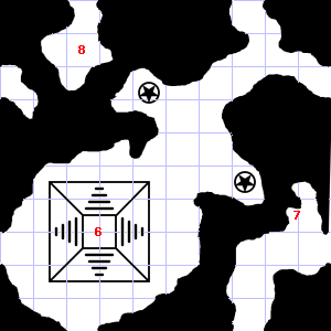 | 1 | There are scratches on the wall here. Treasure: 600sp, 5 gems. Trap: Illusion of monsters: Wolves (7) | 2 | There is a mold growing here. | 3 | |