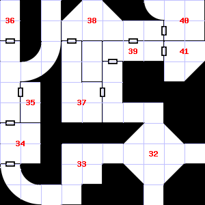| 40 | A metallic smell assails your nostrils. Treasure: 600sp. Trap: Flash of light: Save vs. Spells or be blinded for 1d8 turns (1d8x10 minutes). | 41 | The smell of ozone assails your nostrils. There is a rusted spike here. Encounter: Acolytes (5) Treasure: None. | 42 | This area is covered in cobwebs. |