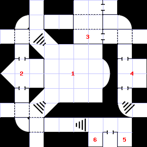| 13 | 14 | It is foggy here, making it difficult to see. Trap: Poison gas: Save vs. Poison or die. | 15 | Trap: Chute: No damage, but slide to the next level down (ignore if there is no lower level). | |