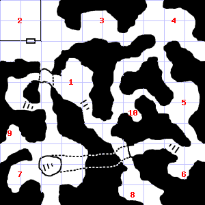 | 1 | There are rotting wood pieces here. Encounter: Goblins (6) Treasure: As per monster type. | 2 | This area smells faintly of manure. There is a pick handle here. | 3 | |