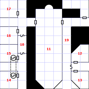 | 16 | 17 | This area has a pleasant, earthy smell. | 18 | Trap: Ceiling Block falls: Save vs. turn to Stone or take 1d10 points of damage. | |