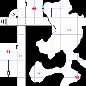 | 40 | 41 | This area is covered in cobwebs. Trap: Chute: No damage, but slide to the next level down (ignore if there is no lower level). | 42 | This area is covered in cobwebs. Treasure: 300sp. | |