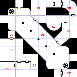 | 64 | There are dry leaves and twigs scattered here. | 65 | Encounter: Gnomes (1) Treasure: None. | 66 | There is a mold growing here. |