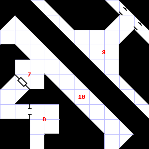 | 7 | This area is covered in cobwebs. | 8 | Encounter: Shrews, Giant (7) Treasure: As per monster type. | 9 | A cold air current blows through this area. A chlorine-like smell assails your nostrils. Encounter: Gnomes (4) Treasure: None. |