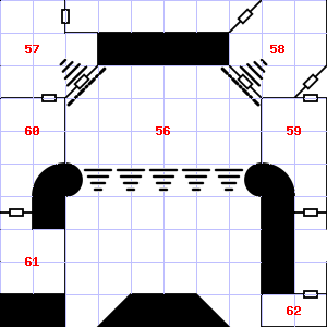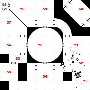 | 55 | A haze of smoke hangs in the air. Trap: Chute: No damage, but slide to the next level down (ignore if there is no lower level). | 56 | The air here is very hot. | 57 | A strong wind blows through this area. The smell of ozone assails your nostrils. Treasure: 500sp. |