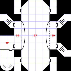 | 37 | Encounter: Spiders, Crab (4) Treasure: As per monster type. | 38 | A cold air current blows through this area. | 39 | There is a pile of ashes here. Treasure: 100sp. Trap: Poison snake: 1 hit dice. |