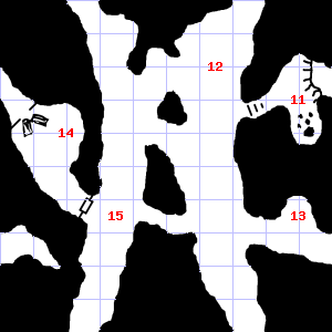 | 13 | This area has a pleasant, earthy smell. Encounter: Kobolds (11) Treasure: As per monster type. | 14 | The air here is very cold. There is a cracked hammer head here. Encounter: Orcs (5) Treasure: None. | 15 | |