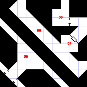 | 58 | A slight, damp breeze blows through this area. The wall here is damp. | 59 | The air here is very hot. The smell of ozone assails your nostrils. Encounter: Beetles, Fire (5) Treasure: None. | 60 | The air here is very cold. |