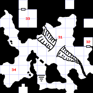 | 31 | A strong wind blows through this area. A chlorine-like smell assails your nostrils. Encounter: Dwarves (1) Treasure: As per monster type. | 32 | Encounter: Green Slimes (3) Treasure: As per monster type. | 33 | There are bones scattered here. Encounter: Goblins (6) Treasure: As per monster type. |