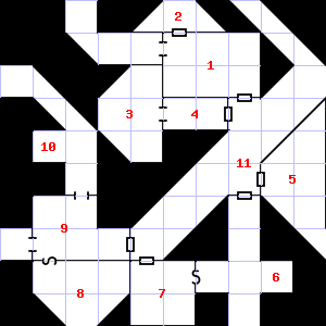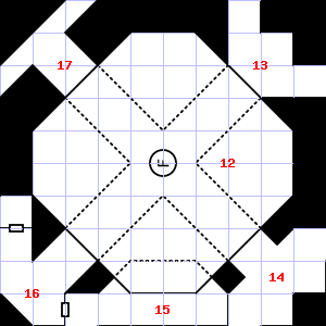 | 16 | This area has a stale, fetid smell. This area is covered in cobwebs. Encounter: Beetles, Fire (5) Treasure: As per monster type. | 17 | This area smells faintly of urine. Trap: Chute: No damage, but slide to the next level down (ignore if there is no lower level). | 18 | A strong, gusting wind blows through this area. This area smells of rotting vegetation. |