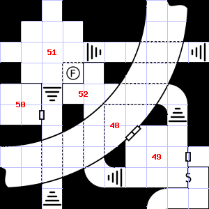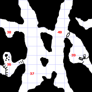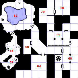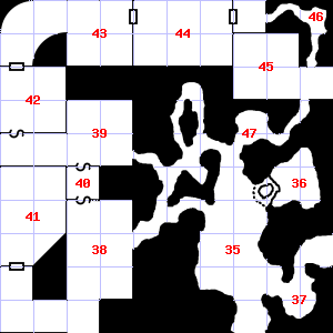 | 46 | The air here is very cold. | 47 | A strong, moaning wind blows through this area. It is foggy here, making it difficult to see. There is a cracked hammer head here. | 48 | It is foggy here, making it difficult to see. Teeth and fangs are scattered here. Treasure: 400sp. |